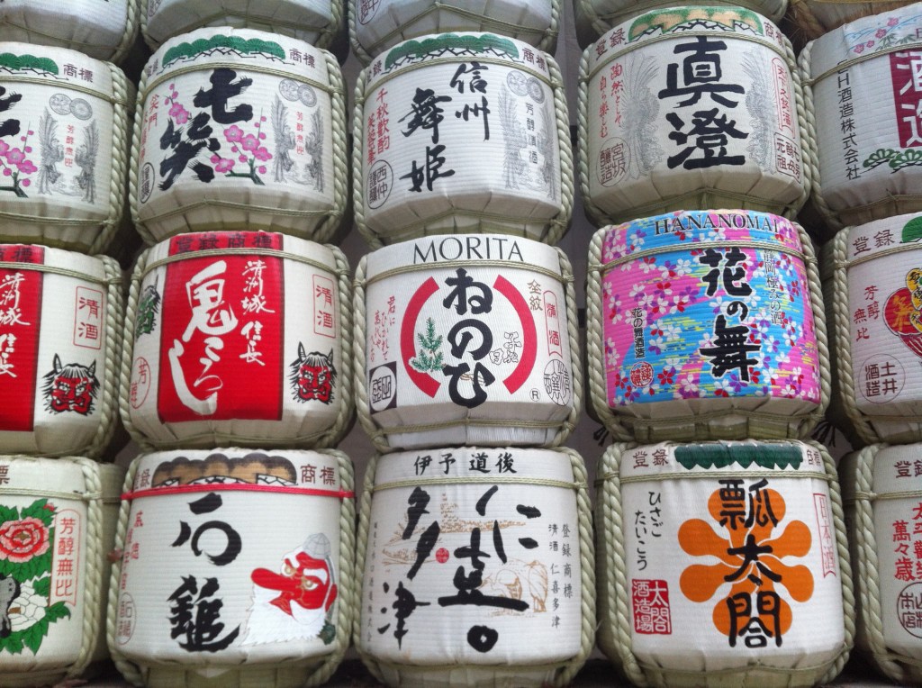Along the path to Meiji, you will find hundreds of sake barrels, called “Kazaridaru” or “decoration barrels”. They symbolize the sake or “o-miki” that is donated by Japanese sake brewers to Meiji, for use in their Shinto ceremonies. They are very colorful, and have many different designs.