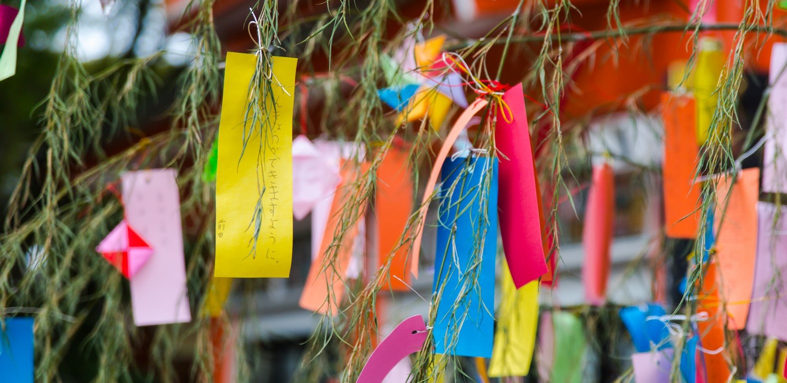 People celebrate by writing wishes on tanzaku (短冊), small pieces of colorful paper, and then hang them on bamboo branches. The bamboo are usually put on floats on a river, or burned after the festival. Of course, there are also many other decorations, floats, food stalls, and parades! So if you are in Tokyo during this time, make sure you join the fun!
