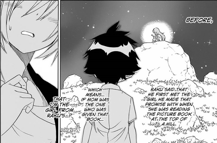 So now Chitoge is saying goodbye to Raku’s mom, and will begin her journey to the Tenku Plateau. But we learn that Raku’s mom lied, as she did know about the promise Raku made. She just did not want to tell Chitoge. And then Raku’s mom says something cryptic. That Chitoge must learn the truth…even if it hurts her. But was it this “truth”? And … Continue reading Nisekoi 217